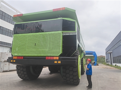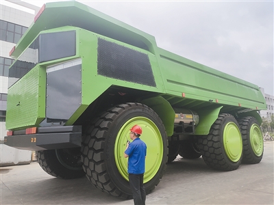 ¸ß5.4Ãס¢³¤13Ãס¢¿í4.5Ã×£¬×ÔÖØ110¶Ö¡¢ÔØÖØ150¶Ö£¬½öÒ»ÌõÂÖÌ¥¾Í¸ß´ï2.5Ãס¡ÔÚÖй¤¼Ê»ªÖع¤(Çൺ)ÓÐÏÞ¹«Ë¾³§ÇøÄÚ£¬Ó³Èë¼ÇÕßÑÛÁ±µÄÊÇÒ»¸öÅÓÈ»´óÎï¡£Õą̂¿óɽ³µÂúÉí¿Æ¼¼·¶£º³µÉí³ÊdzÂÌÉ«£¬³µÍ·ÅäÒÔ˶´óµÄµç×ÓÆÁ£¬ÏÔʾµçѹ¡¢³µËÙ¡¢×°ÔØÁ¿¡¢»ØÀ¡¹¦ÂʵÈʵʱÊý¾Ý£¬³µÁ¾Áé»îµØÇ°½øÍËÈ´¡¢¾ÙÉý·¶·£¬ËùÓвÙ×÷¾ùÔÚ¼¸°ÙÃ×ÍâµÄÔ¶³Ì²Ù×÷̨Íê³É¡¡
